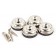 Conjunto de cuatro pies deslizantes de metal con bujes de goma y tornillos de montaje para gabinete de amplificador.